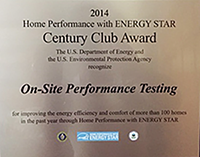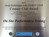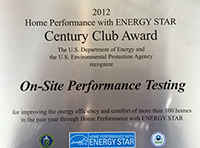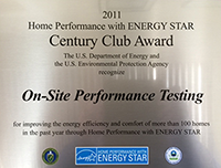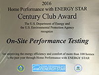 | 					      The Century Club Award recognizes On-Site Performance Testing as one of our leaders who has successfully improved the energy efficiency of 100 or more homes in the past year through the Home Performance with ENERGY STAR Program.
